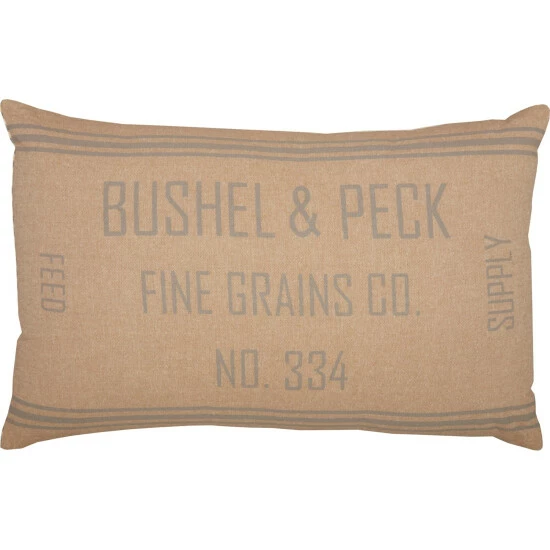 - FARMHOUSE DECOR: The front of our Grace Pillow is stenciled with nickel gray text proclaiming “BUSHEL & PECK FINE GRAINS CO” with grain sack stripes running horizontally. For a classic update, reverse this decorative accent pillow to the gray and cream ticking stripe back. Pair with any of our Grace Collection for a complete look when decorating your home.