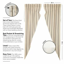 Functional and stylish, our Grace Grain Sack Stripe Prairie Long Panel Set 84x36x18 helps bring your farmhouse-inspired vision to life. Perfect for any season, these 100% cotton curtains feature a creme base with nickel grey grain sack stripes. This refreshing window treatment coordinates effortlessly with our Grace bedding collection for a complete look in your country-style bedroom.