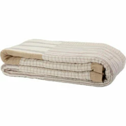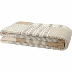 The Grace Queen Quilt is a fun and eccentric combination of variously sized patterns and patches, styled the way VHC customers have loved for many years. Elegant enlarged ticking stripes, a farmhouse staple, are spaced among checks and windowpanes and encompassed with a ruffled chambray border, giving the quilt a breath of visual fresh air. Hand quilted, 100% cotton.