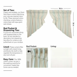 Classic and timeless, our Grain Sack Aqua Prairie Swag Set 36x36x18 helps bring your cozy sea-inspired vision to life. Perfect for any season, these textured cotton chambray curtains feature a creme base with aqua grain sack stripes. This refreshing window treatment coordinates well with our Avani Sea Glass bedding collection for a complete look in your vintage or boho farmhouse-style bedroom. Give your curtains a simple refresh and let in natural light with the drawstring ties attached.