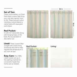 Classic and timeless, our Grain Sack Aqua Tier Set 36Lx36W helps bring your cozy sea-inspired vision to life. Perfect for any season, these textured cotton chambray curtains feature a creme base with aqua grain sack stripes. This refreshing window treatment coordinates well with our Avani Sea Glass bedding collection for a complete look in your vintage or boho farmhouse-style bedroom.