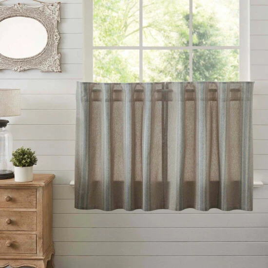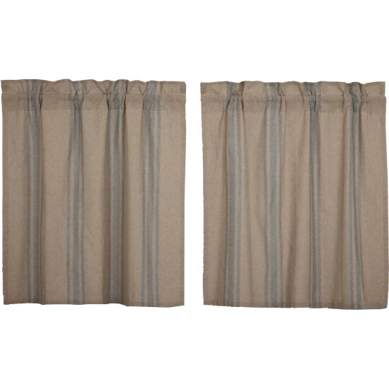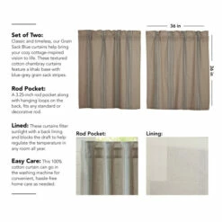 Classic and timeless, our Grain Sack Blue Tier Set 36Lx36W helps bring your cozy cottage-inspired vision to life. Perfect for any season, these textured cotton chambray curtains feature a khaki base with blue-grey grain sack stripes. This refreshing window treatment coordinates effortlessly with our Farmer’s Market bedding collection for a complete look in your vintage-style bedroom.
