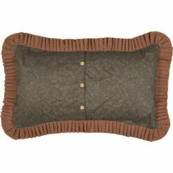 - Trimmed with 2″ and 3″ double pleated ruffle in floral ditsy and plaid fabrics, .5″ piping around inside edge in green plaid fabric
