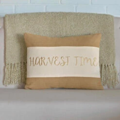- Embroidered “Harvest Time” in natural handwritten font