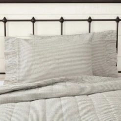 Add a cozy and refreshing look to your farmhouse style bedroom with the Hatteras Seersucker Blue Ticking Stripe Standard Pillow Case Set of 2 21×30. This Americana pillow case set gives off a cool ocean breeze, vintage vibe featuring popular ticking stripes in denim blue and cotton white with quality seersucker material to enjoy for years to come. Coordinates perfectly with the Hatteras Seersucker Blue Coverlet.