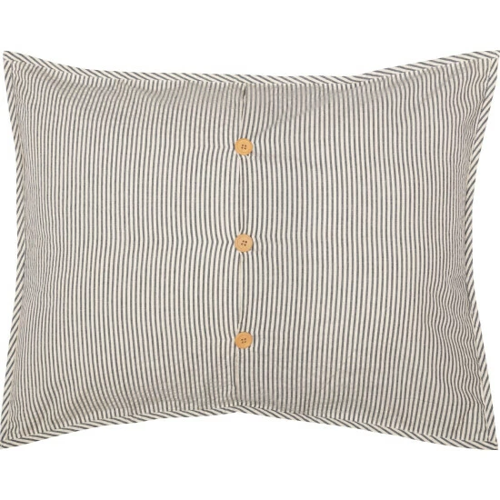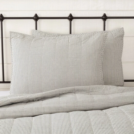 Add a cozy and refreshing look to your farmhouse style bedroom with the Hatteras Seersucker Blue Ticking Stripe Standard Sham 21×27. This Americana sham gives off a cool ocean breeze, vintage vibe featuring popular ticking stripes in denim blue and cotton white with quality seersucker material to enjoy for years to come. Coordinates perfectly with the Hatteras Seersucker Blue Coverlet.