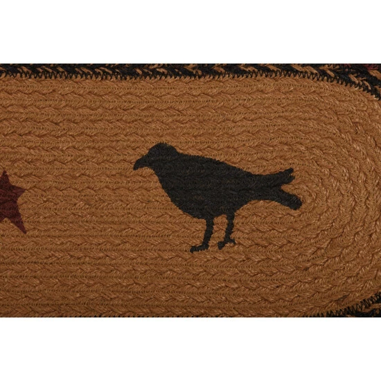 - PRIMITIVE CROW & STAR: Black crow on each end with burgundy and black primitive stars stenciled in between