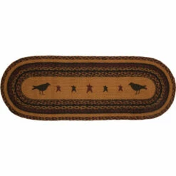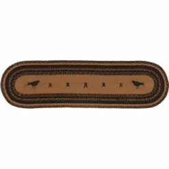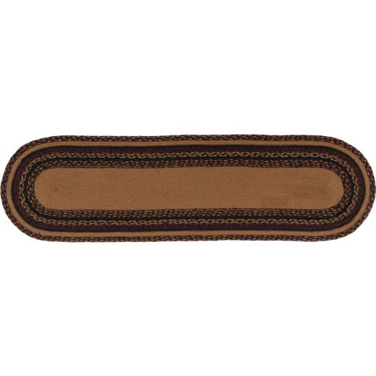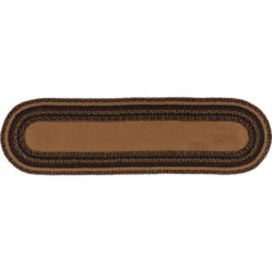 - PRIMITIVE PALETTE:This table runner contains concentric solid and mixed braids of mustard tan, black, and burgundy