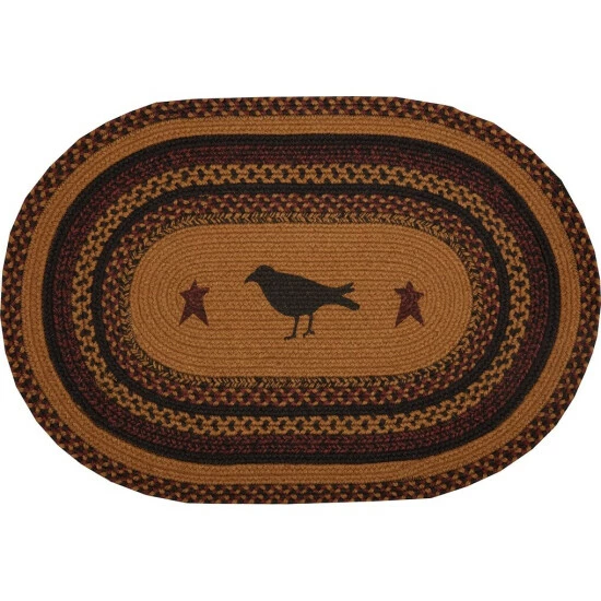 The Heritage Farms Crow Jute Rug makes a textured primitive addition to your home decor. This 20″x30″ rug showcases beautiful concentric braids of mustard yellow, black, and burgundy with a rustic crow stenciled in the center. Durable machine stitching holds the braiding together even with the increased wear and tear from constant use. Reverses to the same as front. Includes a separate 100% PVC rug pad that works on most floor types for non-slip quality.