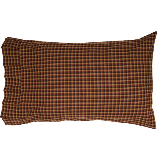 - PRIMITIVE PALETTE: The base of these pillow cases features a primitive burgundy, mustard, and black plaid fabric
