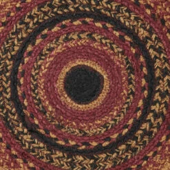 PRIMITIVE CHAIR PAD: Our Heritage Farms Jute 15 inch Chair Pad features alternating solid and mixed braids in a warm primitive color palette.,TEXTURED MATERIAL: The single chair pad is crafted with 80 percent jute and 20 percent other fibers, adding both style and function to your country dΓΒ©cor.,PROTECTS SURFACES: Unique fiber and braiding protect surfaces from heat, scratches, and condensation.,CHAIR TIES: Chair pad includes two 100 percent cotton ties to attach to the seat of your choice; works for most chair types.,COORDINATING ACCESSORIES: Pair this primitive chair pad with matching placemats, runners, and more from the Heritage Farms Jute collection.
