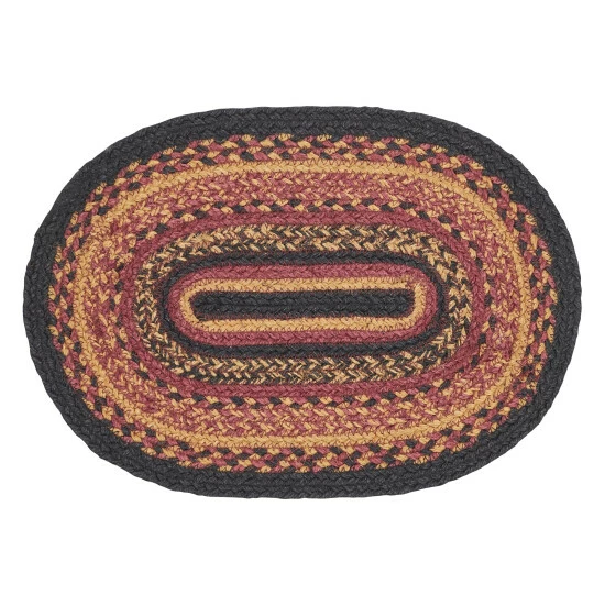 PRIMITIVE DECOR PLACEMAT: Our Heritage Farms Jute 10×15 inch oval Placemat features alternating solid and mixed braids in a warm primitive color palette.,TEXTURED MATERIAL: The single placemat is crafted with 80 percent jute and 20 percent other fibers; the tighter weave allows it to lay flatter once the item is unpackaged.,PROTECTS SURFACES: Unique fiber and braiding protect surfaces from heat, scratches, and condensation.,EASY CARE: Due to its handmade nature, carefully spot clean with warm water as needed.,COORDINATING ACCESSORIES: Pair this primitive placemat with matching runners, coasters, and more from the Heritage Farms Jute collection.