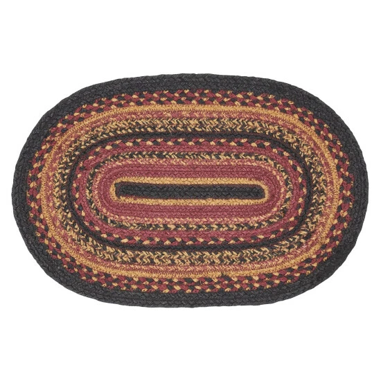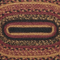 PRIMITIVE DECOR PLACEMAT: Our Heritage Farms Jute 12×18 inch oval Placemat features alternating solid and mixed braids in a warm primitive color palette.,TEXTURED MATERIAL: The single placemat is crafted with 80 percent jute and 20 percent other fibers; the tighter weave allows it to lay flatter once the item is unpackaged.,PROTECTS SURFACES: Unique fiber and braiding protect surfaces from heat, scratches, and condensation.,EASY CARE: Due to its handmade nature, carefully spot clean with warm water as needed.,COORDINATING ACCESSORIES: Pair this primitive placemat with matching runners, coasters, and more from the Heritage Farms Jute collection.