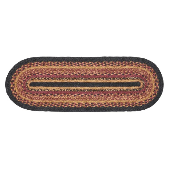 PRIMITIVE RUNNER: Our Heritage Farms Jute 8×24 inch Oval Runner features alternating solid and mixed braids in a warm primitive color palette.,TEXTURED MATERIAL: The single runner is crafted with 80 percent jute and 20 percent other fibers; the tighter weave allows it to lay flatter once the item is unpackaged.,PROTECTS SURFACES: Unique fiber and braiding protect surfaces from heat, scratches, and condensation.,EASY CARE: Due to its handmade nature, carefully spot clean with warm water as needed.,COORDINATING ACCESSORIES: Pair this primitive runner with matching placemats, coasters, and more from the Heritage Farms Jute collection.