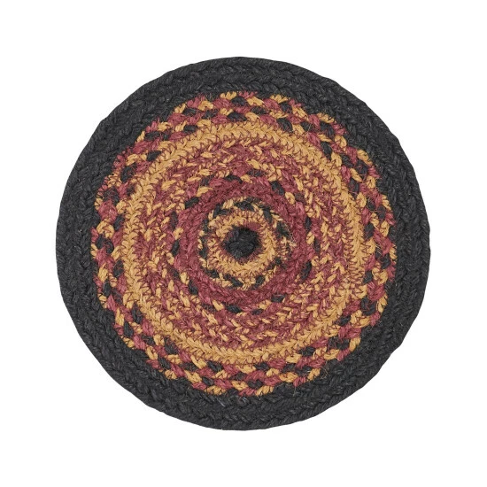 PRIMITIVE TRIVET: Our Heritage Farms Jute 8 inch Trivet features alternating solid and mixed braids in a warm primitive color palette.,TEXTURED MATERIAL: The single trivet is crafted with 80 percent jute and 20 percent other fibers, adding both style and function to your country decor.,PROTECTS SURFACES: Unique fiber and braiding protect surfaces from heat, scratches, and condensation.,EASY CARE: Due to its handmade nature, carefully spot clean with warm water as needed.,COORDINATING ACCESSORIES: Pair this primitive trivet with matching placemats, coasters, and more from the Heritage Farms Jute collection.