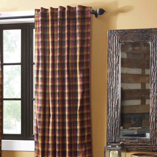 - PRIMITIVE CHECK: Large-scale deep burgundy, mustard, and black check fabric
