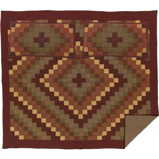 - OUTER BORDER: Both quilt and shams feature border in merlot and black plaid fabric