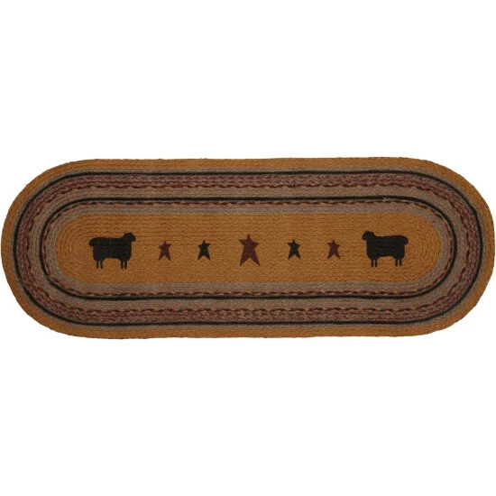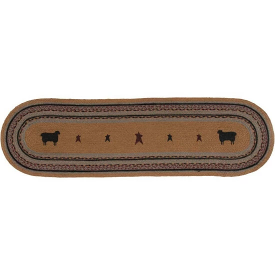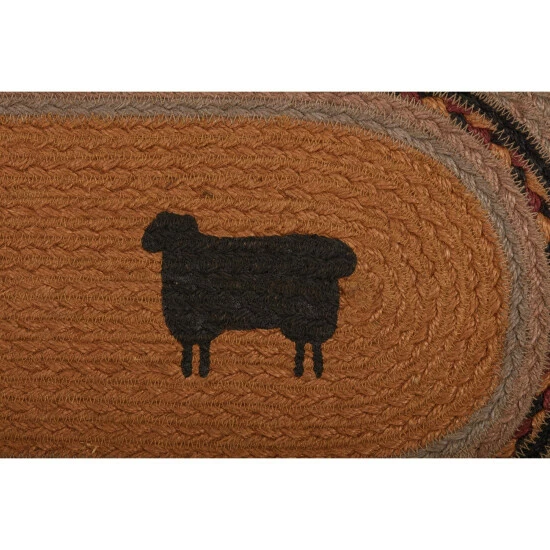 - PRIMITIVE SHEEP & STAR: Stenciled black sheep on each end with burgundy and black primitive stars in between