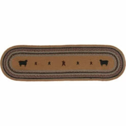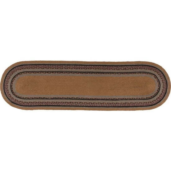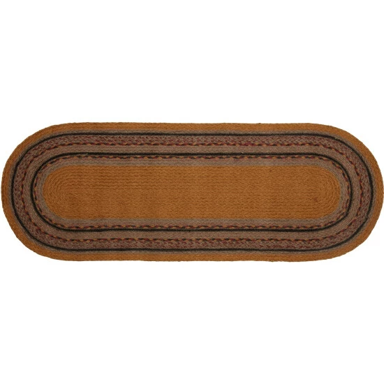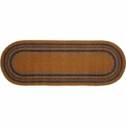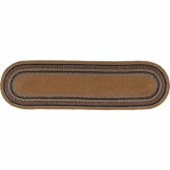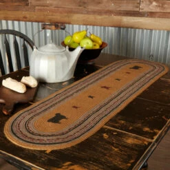 - PRIMTIIVE FRESH: This table runner contains concentric solid and mixed braids of mustard tan, grey-blue, black, and burgundy