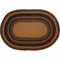 The Heritage Farms Star and Pip Oval Jute Rug makes a textured primitive addition to your home decor. This 20″30″ rug showcases beautiful concentric braids of mustard tan, black, and burgundy with stenciled stars and pips in the center. Durable machine stitching holds the braiding together even with the increased wear and tear from constant use. Reverses to the same as front. Includes a separate 100% PVC rug pad that works on most floor types for non-slip quality.