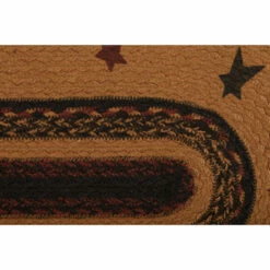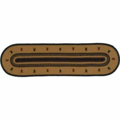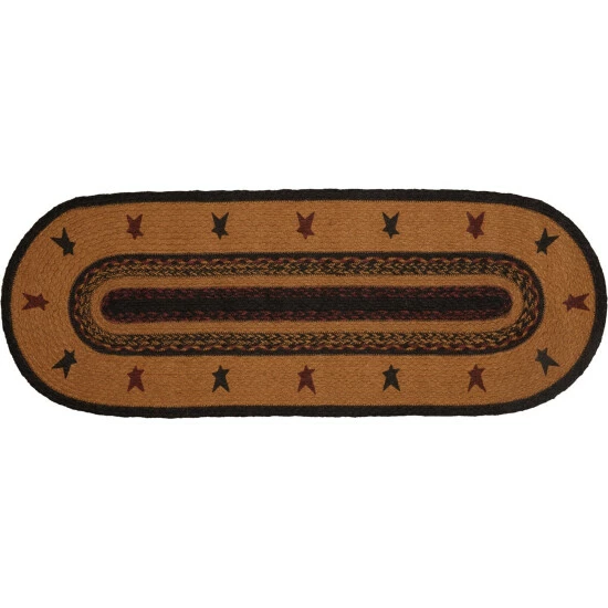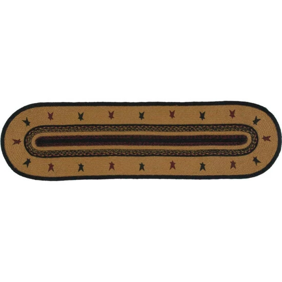 The Heritage Farms Sheep Jute Runner Oval lifts its colors from the bedding set to complete a quietly primitive look throughout the entire house. Sheep stenciling bookending primitive stars adds a homey flair to this runner.