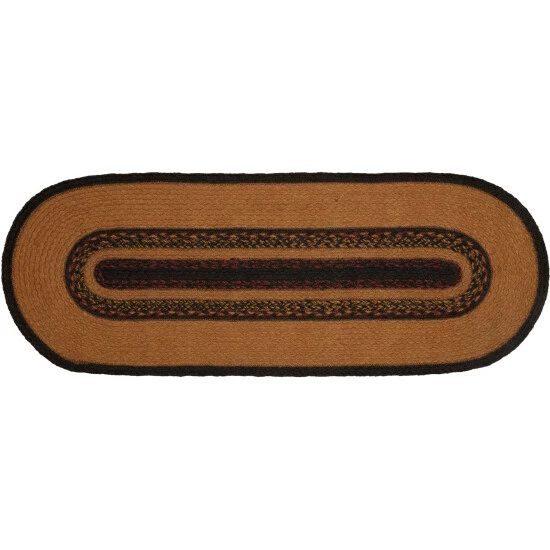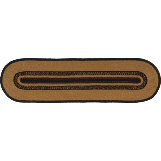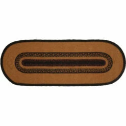 - PRIMTIIVE FRESH: This table runner contains concentric solid and mixed braids of mustard tan, grey-blue, black, and burgundy