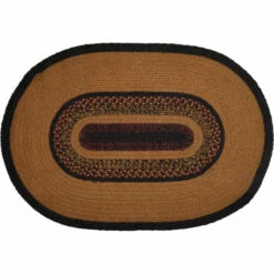 The 20″x30″ Heritage Farms Star Jute Oval Rug is ready for your home, retreat, or cabin with its durable and beautiful construction. Featuring alternating braids in mustard tan, black, and burgundy with stenciled stars for years of enjoyment. Includes a separate 100% PVC rug pad that works on most floor types for non-slip quality.
