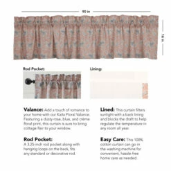 Bring your romantic fairytale cottage vision to life with our Kaila Floral Valance 16×90. This dusty rose, navy, and creme curtain set is beautifully decorated with a bold floral print that adds rustic romance and heartwarming, cozy cottage vibes to your window.