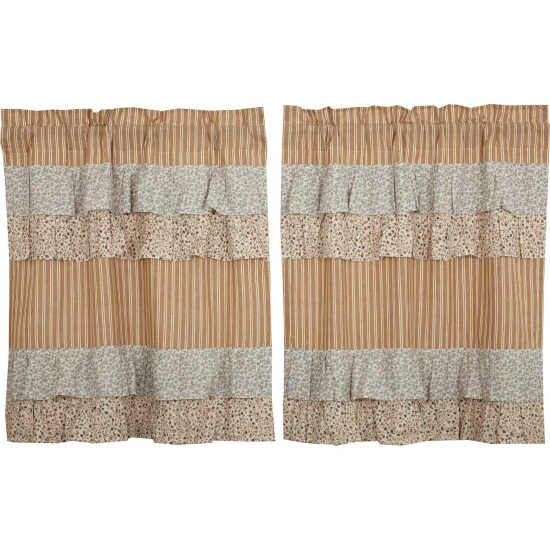 Bring the quiet and quaint fairytale cottage vision to life with our Kaila Gold Ticking Ruffled Tier Set 36Lx36W. This gold and creme stripe curtain set is beautifully decorated. with graceful floral print ruffles towards the top that add rustic romance and heartwarming, cozy cottage vibes to your window.