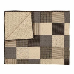 - Straight edge with .5″ bias cut black and tan plaid binding