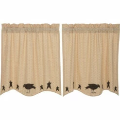 Go for a down to earth classic country look with our new Kettle Grove Applique Crow and Star Tier featuring a traditional favorite primitive star and black crow design with black and tan plaid on our antique inspired ditsy flower print. Bottom edge detailed with larger scale scallop.