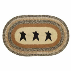 The Kettle Grove Star Stenciled 36″x60″ Jute Rug elevates your prim living space with whimsical stars and natural texture. Featuring a simplistic palette of black, tan, and brown hues with three decorative stars in the center, our cozy 36×60 oval rug makes a vintage-inspired statement to any home while being a versatile neutral color that looks lovely with your existing decor. The thin jute construction allows for easy placement in front of doors. This high-quality Jute rug includes a separate 100% PVC rug pad that keeps this lightweight area rug in place to prevent slipping and bunching.