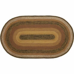 Enhance the look of your home with the Kettle Grove 36″x60″ Oval Jute Rug. Featuring concentric, mixed braids of black, warm creme, and soft caramel brown for a classic primitive, country look. Contains machine stitching that holds the braiding together even with increased wear and tear. Reverses the same as the front and includes a separate 100% PVC rug pad that works on most floor types for non-slip quality.