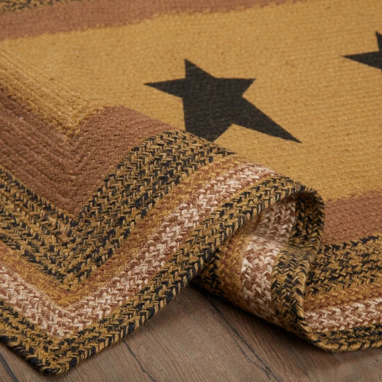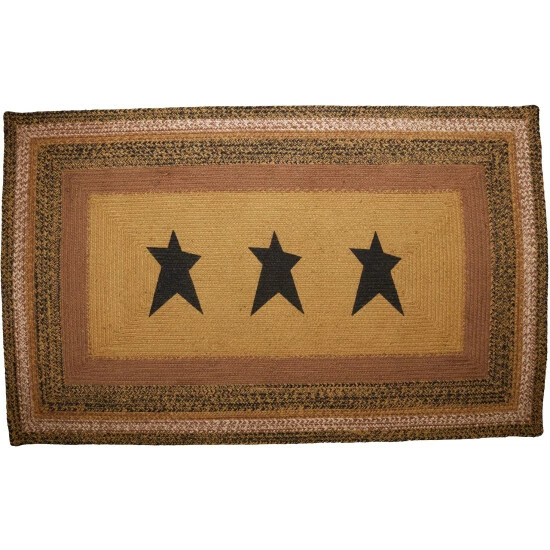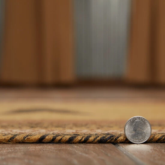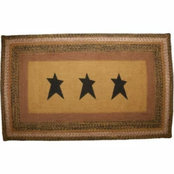 Bring a primitive touch to any room with the Kettle Grove Jute Rug Stencil Star 36×60. Featuring a simplistic palette of black, tan, and brown hues with three decorative stars in the center, our cozy 36×60 oval rug makes a vintage-inspired statement to any home while being a versatile neutral color that looks lovely with your existing decor. The thin jute construction allows for easy placement in front of doors. This high-quality Jute rug includes a separate 100% PVC rug pad that keeps this lightweight area rug in place to prevent slipping and bunching.