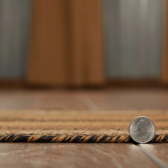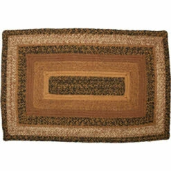 The Kettle Grove Jute Rug makes a textured primitive addition to your home decor. This 20″x30″ rug showcases beautiful concentric braids of dark creme, black, and caramel brown. Durable machine stitching holds the braiding together even with the increased wear and tear from constant use. Reverses to the same as front. Includes a separate 100% PVC rug pad that works on most floor types for non-slip quality.