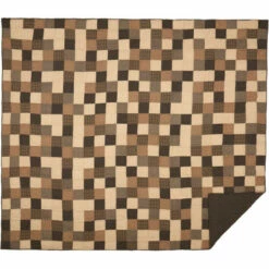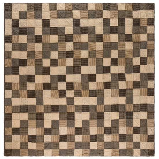 - Featuring assorted patchwork blocks in creme, black, and tan