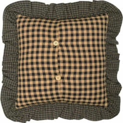 - Trimmed with 2″ and 3″ double gathered ruffle in black and tan plaid fabrics, .5″ piping around inside edge in black ditsy print fabric
