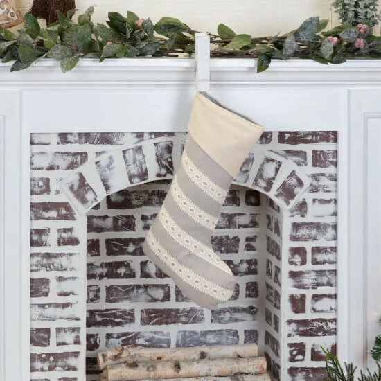 - Farmhouse grey felt accented with diamond pattern creme lace