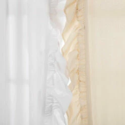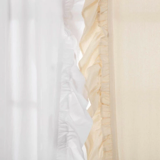 - RUFFLED: Finished with 1″ and 5″ gathered ruffles under rod pocket and along bottom edge