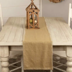 - Creme burlap woven with silver metallic thread for a shimmery finish