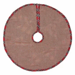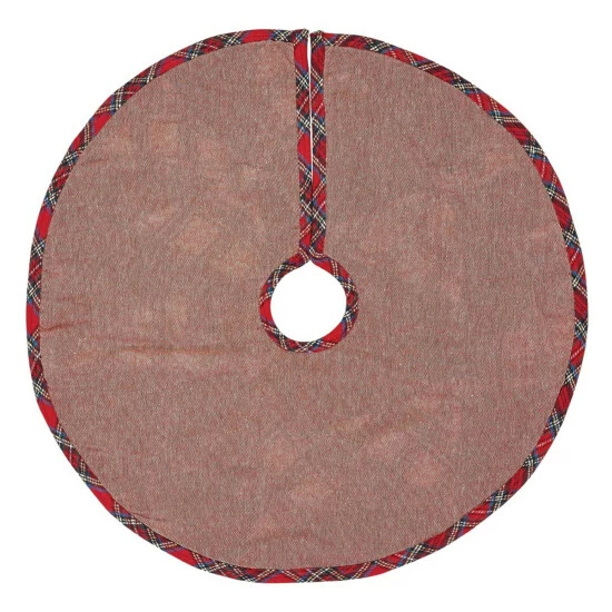 - Opening and outside edge trimmed with .5″ plaid binding adorned with red and ivory braided rope