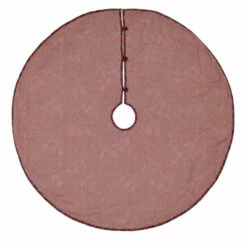 - Features 3 red poly pearl button closures and loops to secure skirt around tree
