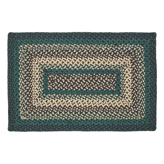 The Pine Grove Rectangle Jute Rug makes a textured addition to your rustic home decor; This 20×30 inch rug showcases beautiful concentric braids of black, tan, and green; Durable machine stitching holds the braiding together even with the increased wear and tear from constant use; Includes a separate 100% PVC rug pad that works on most floor types for non-slip quality.