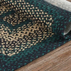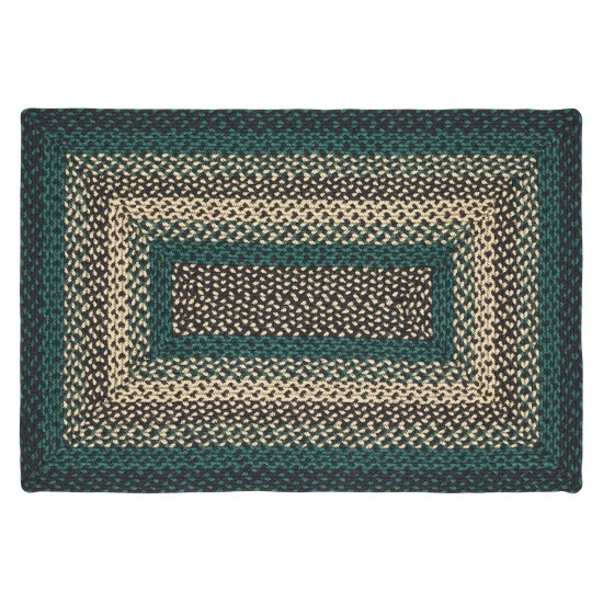 The Pine Grove Rectangle Jute Rug makes a textured addition to your rustic home decor; This 24×36 inch rug showcases beautiful concentric braids of black, tan, and green; Durable machine stitching holds the braiding together even with the increased wear and tear from constant use; Includes a separate 100% PVC rug pad that works on most floor types for non-slip quality.