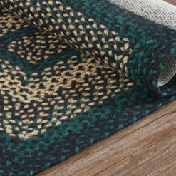 The Pine Grove Rectangle Jute Rug makes a textured addition to your rustic home decor; This 36×60 inch rug showcases beautiful concentric braids of black, tan, and green; Durable machine stitching holds the braiding together even with the increased wear and tear from constant use; Includes a separate 100% PVC rug pad that works on most floor types for non-slip quality.
