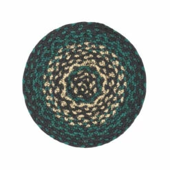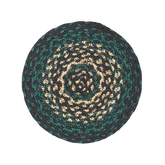 COUNTRY JUTE TRIVET: Includes 1 round trivet (8 inch); This primitive trivet makes a charming gift for any occasion. Give this classic decor item to friends and family as a wedding, housewarming, or birthday present.,TEXTURED MATERIAL: The textured trivet is crafted with 80 percent jute and 20 percent other fibers, adding both style and function to your primitive decor; The beautiful design adds a small country decor flair to the trivet.,VERSATILE COUNTRY STYLE: The unique texture of the jute material adds primitive interest to your dining room decor. The concentric black, tan, and pine needle green design gives your coffee, side, or dining table a dash of country charm.,COORDINATING ACCESSORIES: Pair this primitive trivet with matching placemats, coasters, and more from the Pine Grove collection.,EASY CARE: To give your jute trivet as many years of quality use as possible, carefully spot clean when dirty.