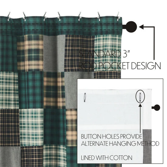 PREMIUM CONSTRUCTION: Our high-quality pieces are built to last for years to come. Our 100% cotton traditional patchwork shower curtain is expertly machine-stitched and carefully lined with soft cotton. Features a straight edge, a textured flat-weave, and a 3-inch rod pocket for hanging. A plastic liner is recommended to keep your primitive shower curtain in top condition.