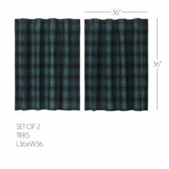 Transform your home with this Pine Grove Tier Set of 2 that brings warmth to your living area with rustic colors and a rugged buffalo check design. This set of 2 tiers feature rich pine green and black with a straight edge flat weave. Our L36xW36 tiers are finished with convenient hanging loops that add country appeal to your kitchen or living room.