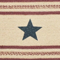 AMERICANA RUNNER: Our Potomac Jute 8×24 inch Oval Runner features alternating solid and mixed braids in a country color palette and a stenciled star design.,TEXTURED MATERIAL: This runner is crafted with 80 percent jute and 20 percent other fibers; the tighter weave allows it to lay flatter once the item is unpackaged.,PROTECTS SURFACES: Unique fiber and braiding protect surfaces from heat, scratches, and condensation.,EASY CARE: Due to its handmade nature, carefully spot clean with warm water as needed.,COORDINATING ACCESSORIES: Pair this Americana runner with matching placemats, coasters, and more from the Potomac Jute collection.