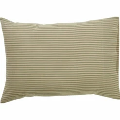 - 4″ trim of woven sage green ticking stripe fabric at opening